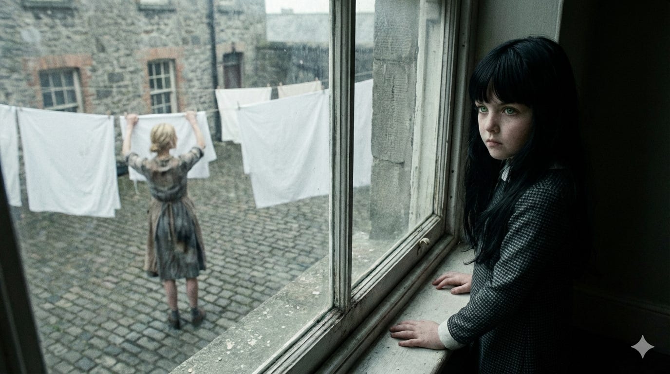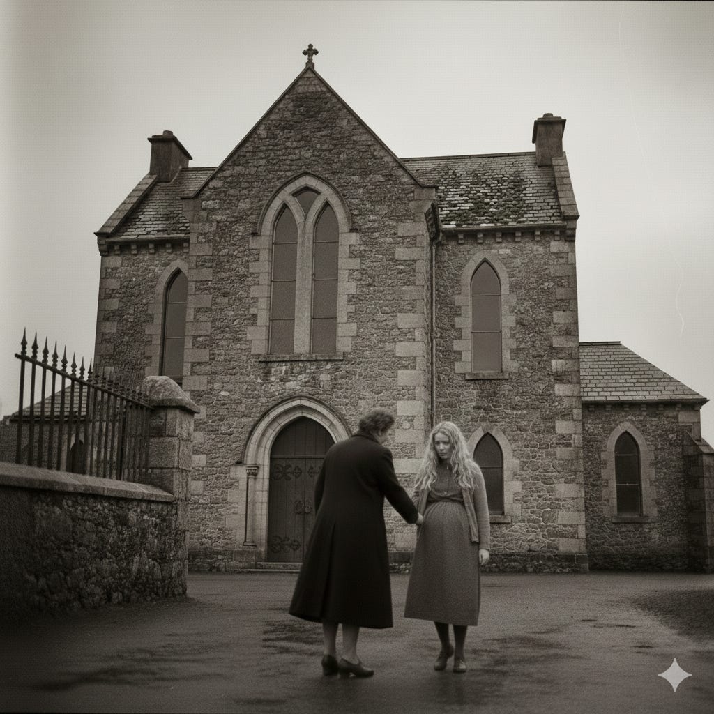 Cuando una puerta lateral se abrió para dar paso a una monja de aspecto aterrador, Siobhan sintió un escalofrío. La mirada acerada ―color y expresión― de la mujer le infundió pánico y comenzó a llorar. Un buen pellizco de su madre la silenció; el moretón en sus costillas persistiría semanas. La monja saludó y dio nombre y rango, como los soldados: