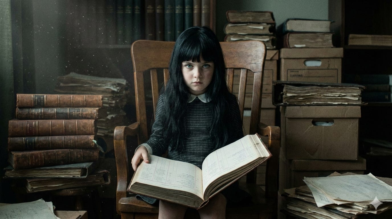 La oficina anexa a la de Bernadette, con su olor a papel viejo y humedad, era el único lugar en el Divino Consejo donde Martina no se congelaba hasta los huesos. Sentada en la silla que le quedaba inmensa, los pies de la niña no tocaban el suelo. Su tarea del día era ordenar legajos de recibos por orden alfabético. Entre las hojas amarillentas, la grafía perfecta de Bernadette se repetía. Martina desarrolló allí su capacidad para los números y las letras. No leía las historias que contaban los documentos; descifraba patrones y anomalías. Encontró un libro de contabilidad de tapa de cuero rojo, más grueso que los demás. Era pesado y le costó sacarlo del estante. Aquel volumen llevaba una etiqueta: “Libro Mayor: Ingresos y Egresos Personales. Cuentas Especiales”.